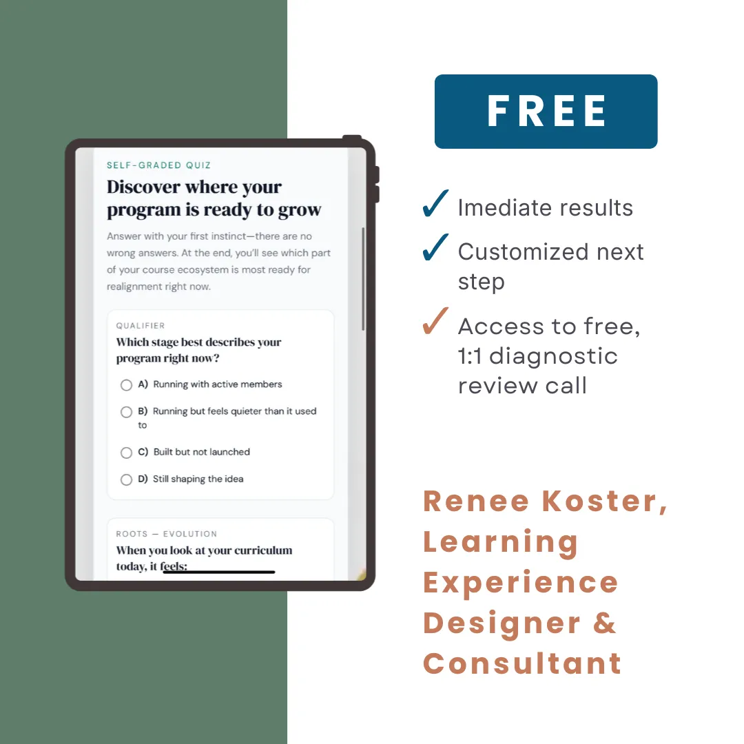 Created using my Roots to Canopy Design Framework™, this is the same diagnostic I use with my clients when we evaluate whether their learning experiences are still aligned with their business vision and audience needs.